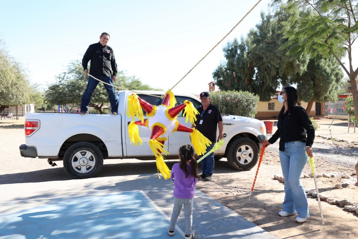 Música, piñata, dulces, pastel, hot dogs, juegos, obsequios y mucha diversión formaron parte de la celebración que el Voluntariado llevó a menores de edad de los ejidos Sahuimaro, La Peaña, Plan de Ayala, el poblado Miguel Alemán, así como de la Casa Hogar Esperanza, en San Pedro el Saucito.