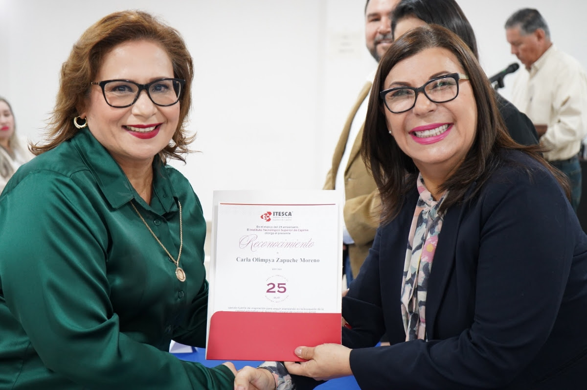 Cajeme, Sonora; 30 de diciembre de 2025.- Como parte de las actividades conmemorativas por su 29 aniversario, el Gobierno de Sonora, a través del Instituto Tecnológico Superior de Cajeme (Itesca), realizó la Ceremonia Anual de Reconocimiento a la Permanencia, diseñada para celebrar y destacar los logros excepcionales de su equipo de trabajo.