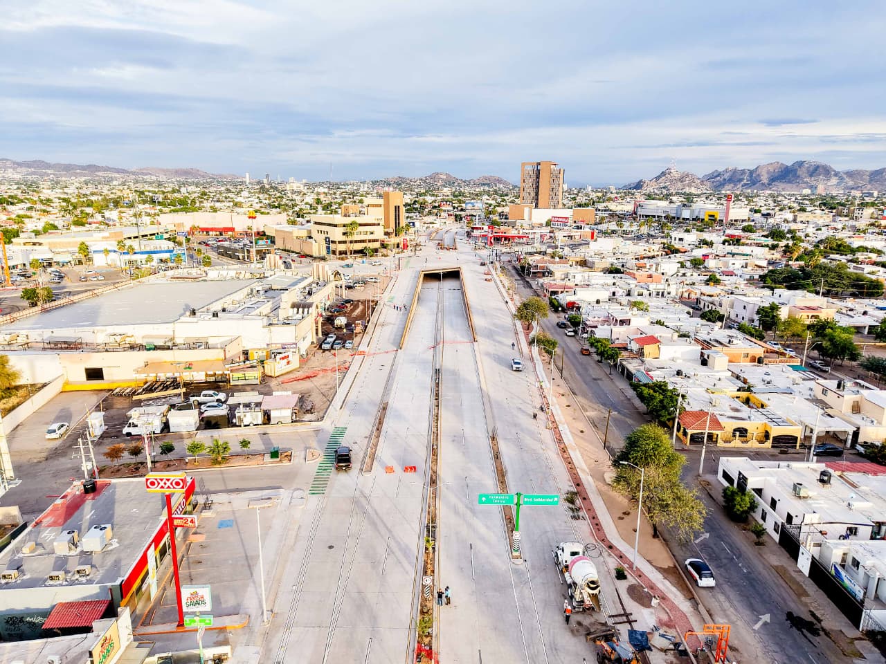 El paso a desnivel Colosio y Solidaridad es el número 14 de Hermosillo e incluye pasos peatonales, ciclocarriles y ciclovías, la forestación de camellones y arriates, iluminación tipo LED y la creación de un parque lineal, entre otros.