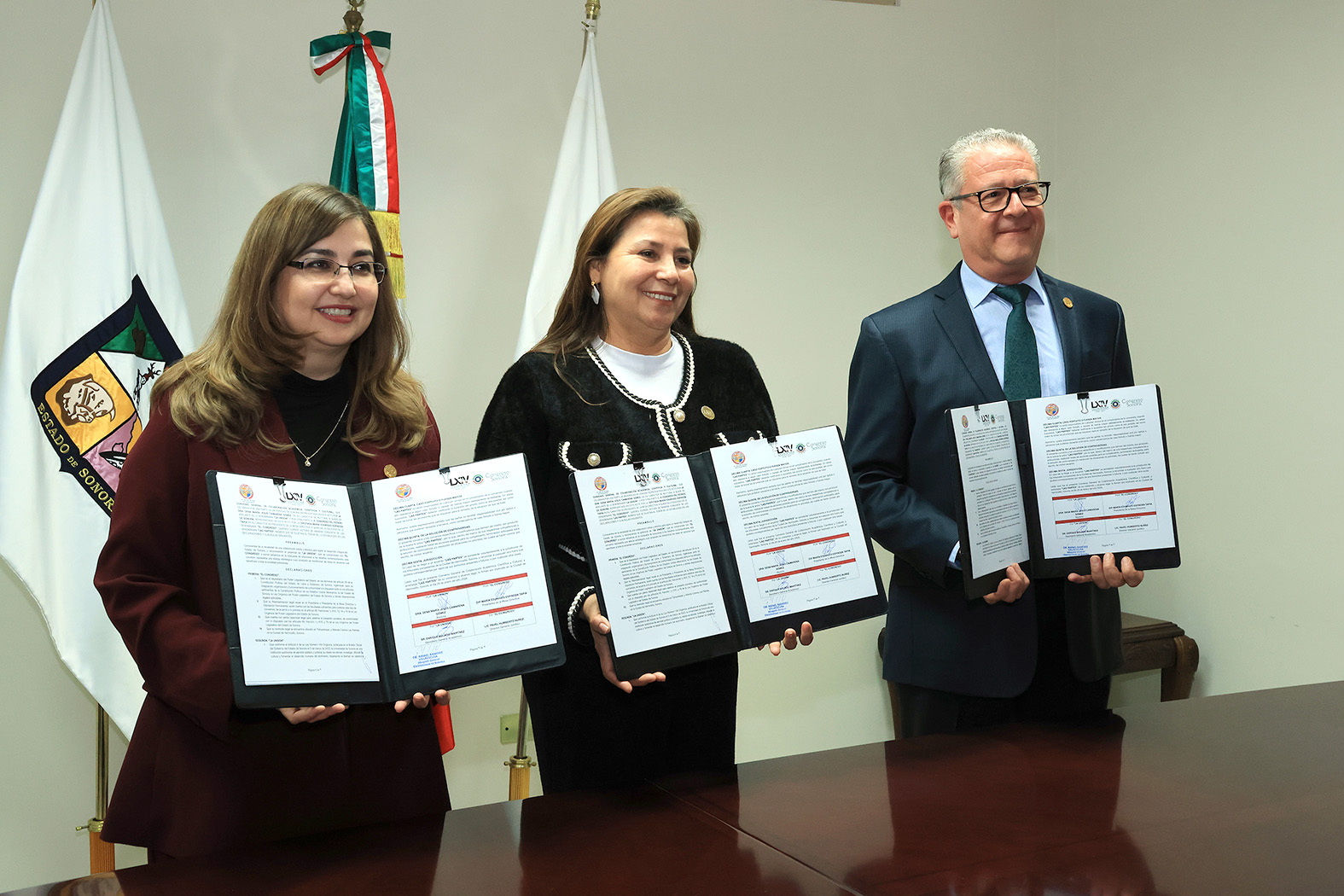 Durante la firma de convenio, que se llevó a cabo en instalaciones del Congreso del Estado, estuvieron presentes por parte de la Universidad de Sonora, Enrique Bolado Martínez, secretario general académico; Joel Enrique Espejel Blanco, titular de la Dirección de Vinculación y Extensión, así como Jesús Moreno Durazo, director de Comunicación.