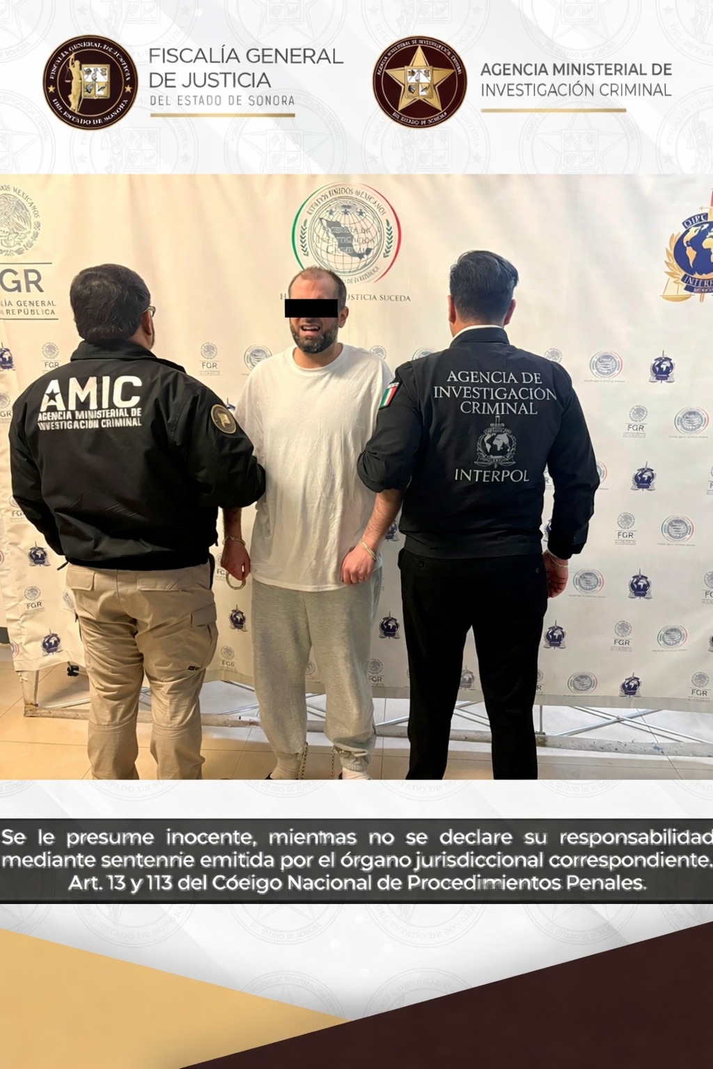 Hermosillo, Sonora, 6 de febrero de 2026.- La Agencia Ministerial de Investigación Criminal (AMIC), en coordinación con la Fiscalía General de la República (FGR) y la Organización Internacional de Policía Criminal (Interpol), cumplió con una orden de aprehensión en contra de Christopher James “N”, de 39 años, por su probable responsabilidad del delito de feminicidio en agravio de su pareja, hechos suscitados en 2021 en Nogales, Sonora
