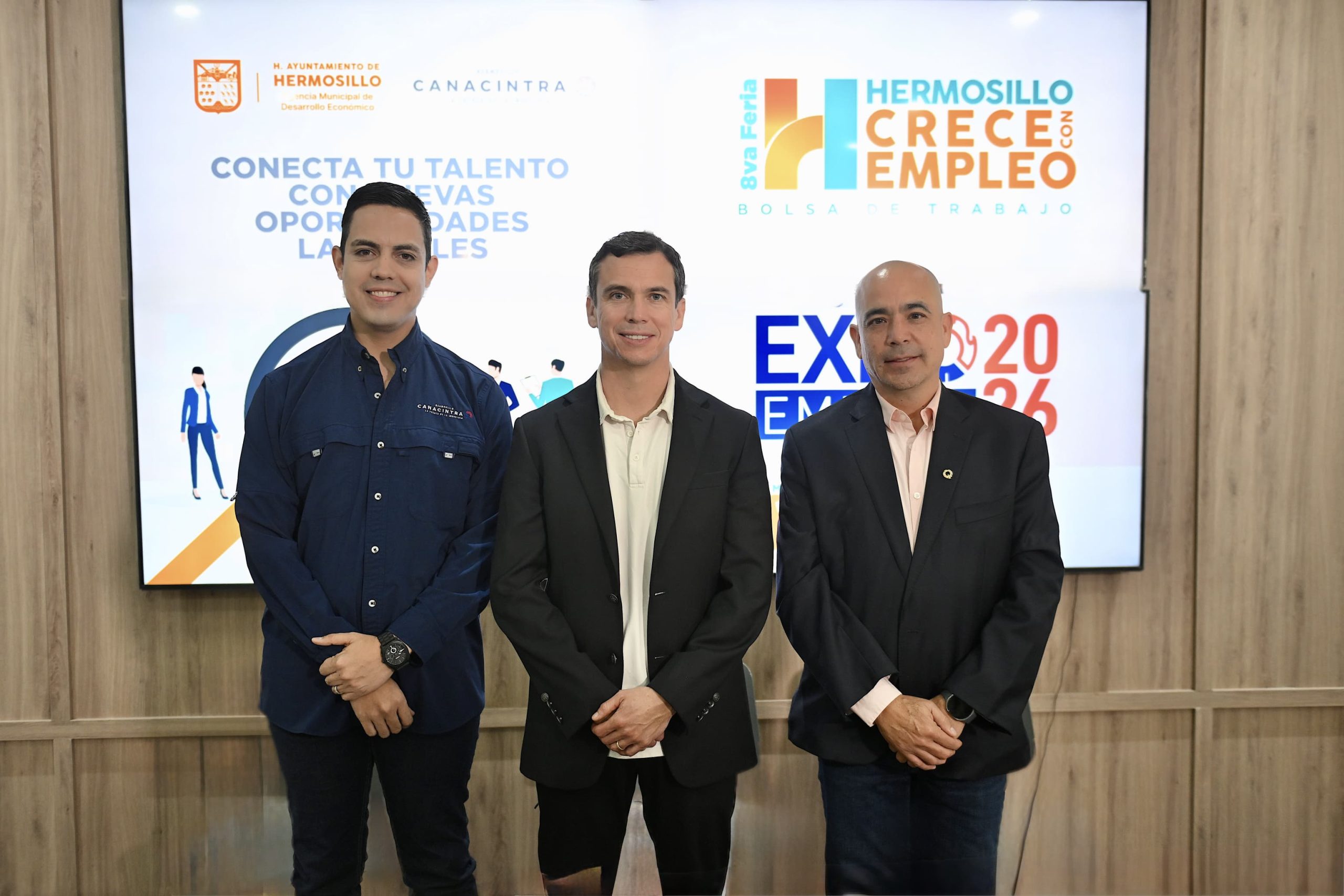 El director de la Agencia Municipal de Desarrollo Económico (AMDE) compartió detalles del evento junto con Iván Contreras Tapia y José Jesús Aguiar Varela, presidente y director de Canacintra Hermosillo, respectivamente, quienes confirmaron como sede las instalaciones del organismo empresarial, en Luis Encinas 460 de la colonia Los Naranjos, de las 9:00 a las 14:00 horas.