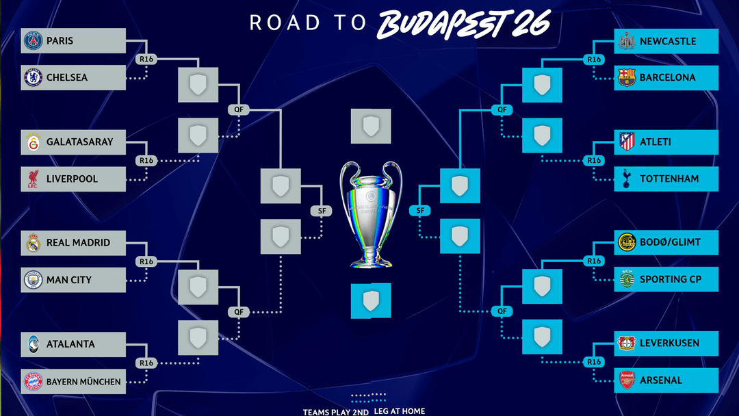 Mientras tanto, el Barcelona evitó el cruce con el PSG y se medirá al Newcastle y el Atlético de Madrid también esquivó al Liverpool para jugarse el pase con el Tottenham, lo que deja al cuadro ‘red’ ante el Galatasaray, verdugo del Juventus, y al Arsenal, líder de la primera fase, ante el Bayer Leverkusen.
