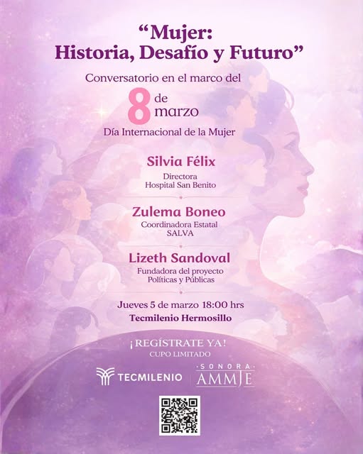 En el marco del Día Internacional de la Mujer, Tecmilenio y AMMJE Sonora te invitan a ser parte de un espacio de diálogo, reflexión e inspiración donde reconoceremos el impacto, la fortaleza y el liderazgo de las mujeres que transforman nuestra sociedad cada día.