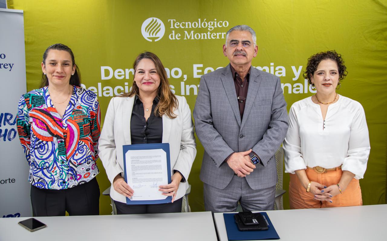 La firma de convenio fue encabezada por Lucía Canseco, directora general del campus Sonora Norte del Tecnológico de Monterrey; José Manuel Ávila, presidente de la Barra Sonorense de Abogados; Naayeli Ramírez, decana región noroeste de la Escuela de Ciencias Sociales y Gobierno del Tecnológico de Monterrey y Angélica López, directora de la Escuela de Ciencias Sociales y Gobierno del campus.