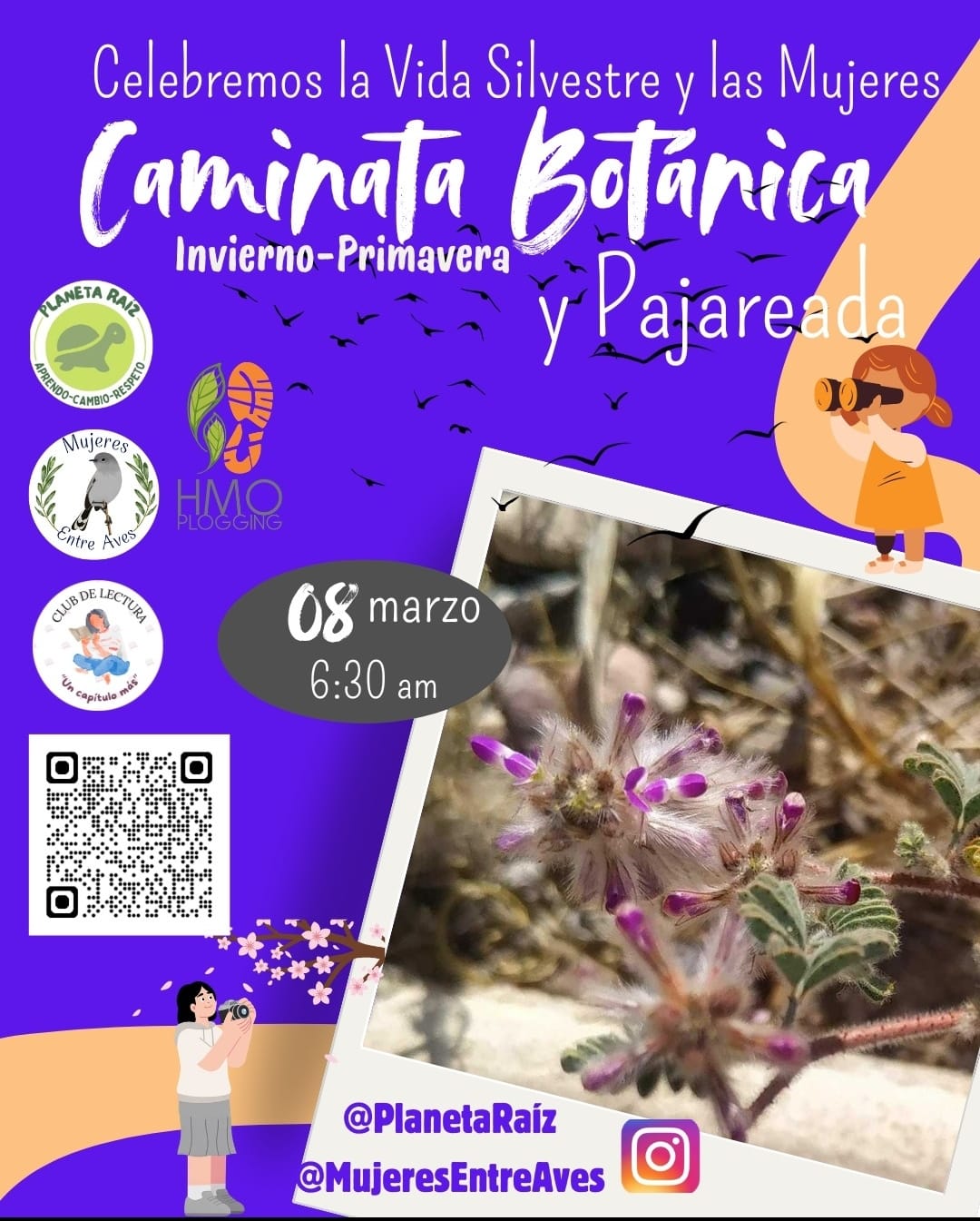 Enfatizó, que el evento forma parte de las actividades para conmemorar el Día Internacional de la Mujer y contará con la participación de organizaciones como Planeta Raíz, HMO Plogging y el Club de Lectura “Un capítulo más”. Las personas interesadas pueden registrarse mediante el código QR disponible en la invitación dentro de la pagina de instragam: MujeresEntreAves.