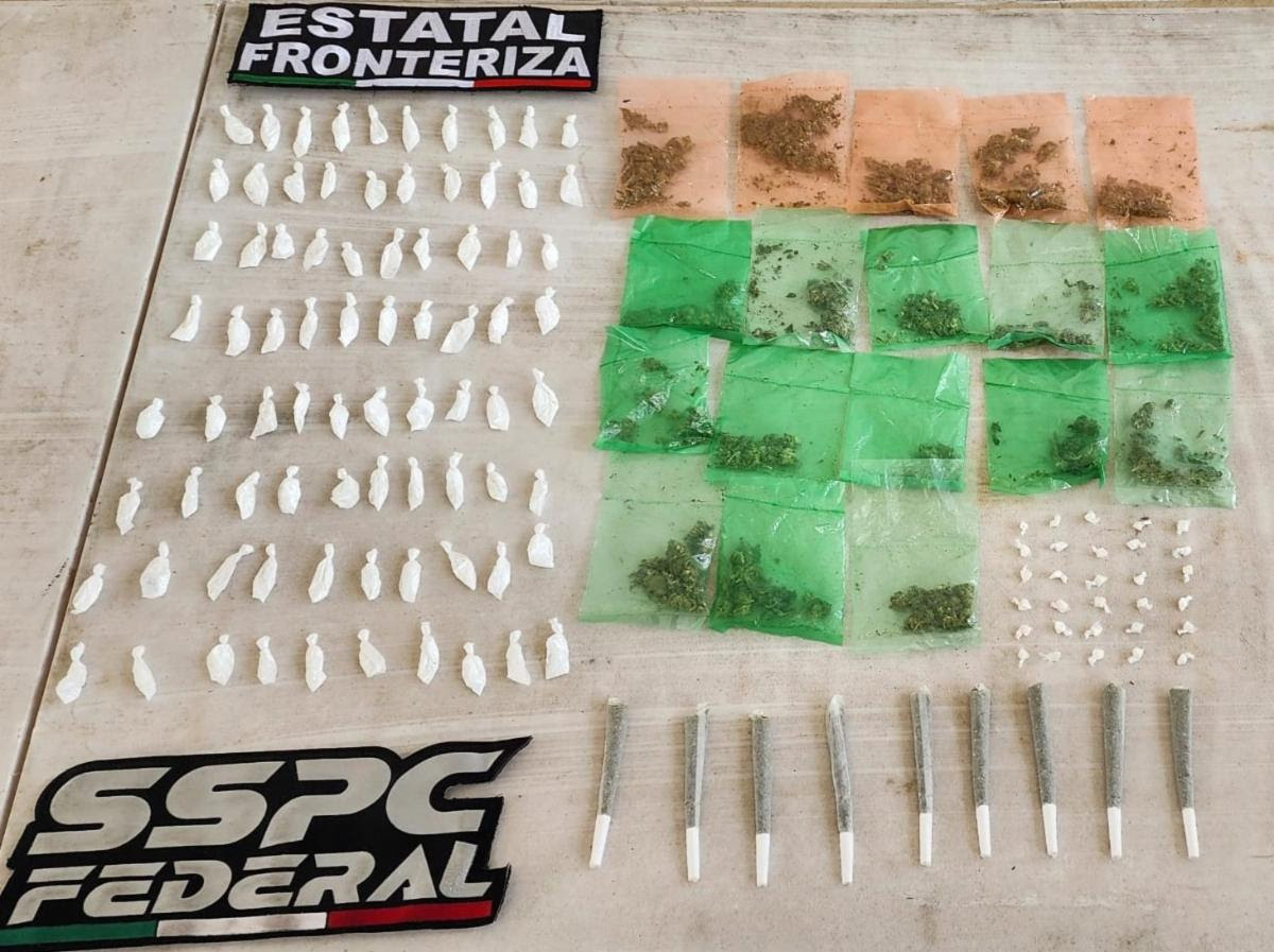 Durante otro operativo que se realizó también en Nogales, en la colonia Pima, en conjunto con elementos de la SSPC se logró el aseguramiento de diversas sustancias prohibidas; entre lo incautado se encuentran 80 bolsas que contenían en su interior un polvo blanco con características propias de la cocaína. Asimismo, se localizaron 30 paquetes que contenían una sustancia granulosa y cristalina con características de metanfetamina.