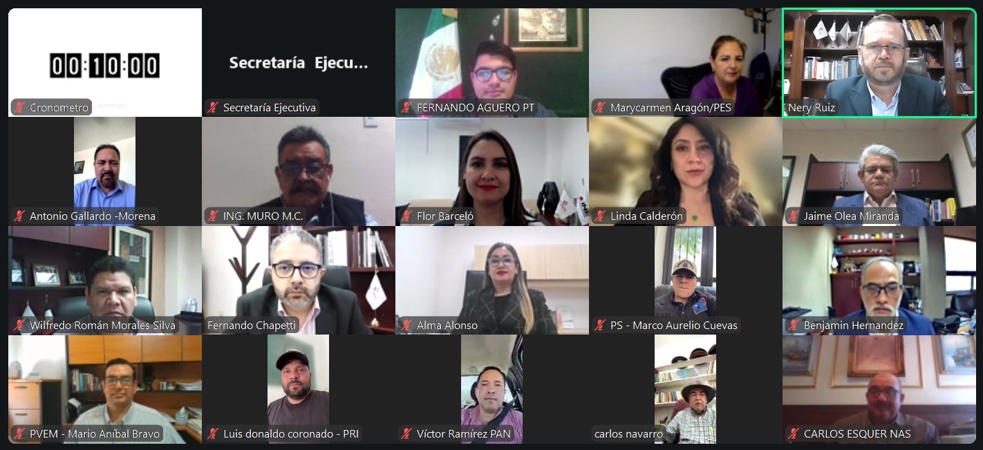 En la sesión virtual ordinaria de este día, estuvieron presentes el consejero presidente Nery Ruiz Arvizu, las consejeras Alma Lorena Alonso Valdivia, Flor Terecita Barceló Noriega y Linda Viridiana Calderón Montaño; así como los consejeros Benjamín Hernández Avalos, Wilfredo Román Morales Silva y Jaime Olea Miranda, además del secretario ejecutivo, Fernando Chapetti Siordia y las representaciones de los partidos políticos acreditados ante este órgano electoral.