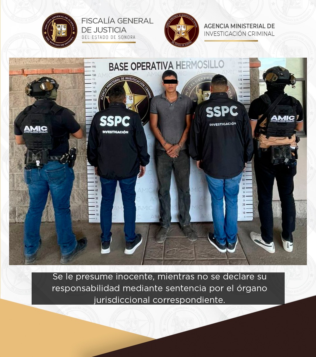 Hermosillo, Sonora, 16 de marzo de 2026.- En un operativo coordinado entre la Agencia Ministerial de Investigación Criminal (AMIC) y la Secretaría de Seguridad y Protección Ciudadana (SSPC), fue capturado en Hermosillo Ángel Gerardo “N”, de 19 años, por su probable responsabilidad en el delito de tentativa de homicidio calificado con premeditación, alevosía y ventaja, cometido en perjuicio de un hombre.
