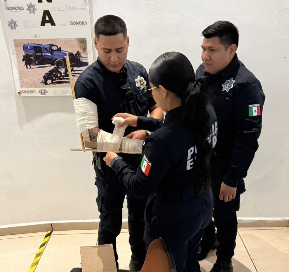 Hermosillo, Sonora; 27 de marzo de 2026.– Grupos operativos de la Policía Estatal de Seguridad Pública (PESP) de Sonora participa en curso Primer Respondiente en Primeros Auxilios por paramédico especializado de Cruz Roja.