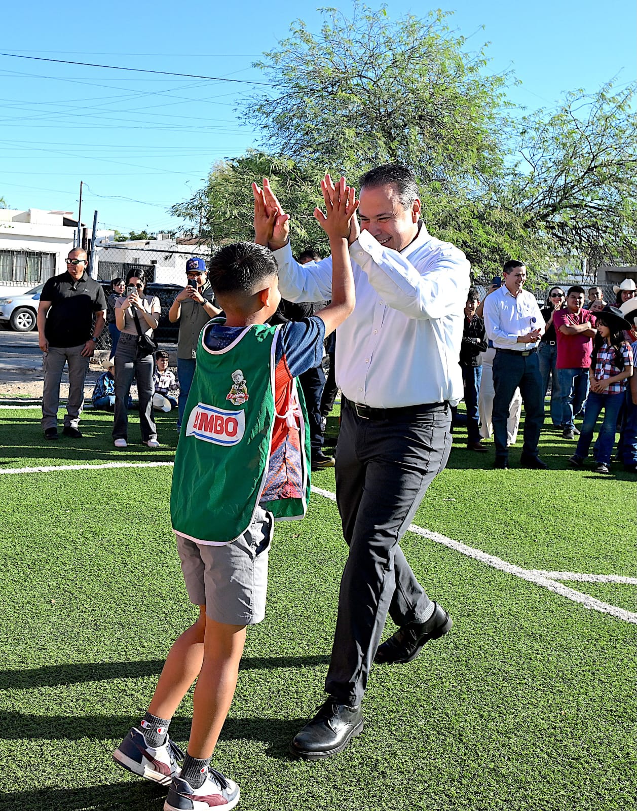 Hermosillo, Sonora; 28 de marzo, 2026.- Como un ejemplo de trabajo en equipo entre gobierno y ciudadanía consideró el presidente municipal Antonio Astiazarán la construcción de un campo de fútbol con pasto sintético, con inversión tripartita de 433 mil 774 pesos, cuya entrega formal encabezó en la primaria Jaime Torres Bodet, de la colonia Olivares.