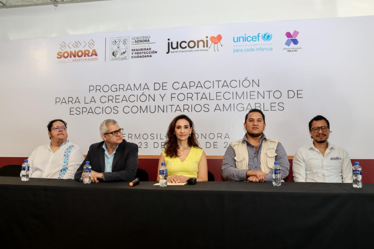 Hermosillo, Sonora; 21 de abril de 2026.- Para sensibilizar sobre el impacto de contar con espacios públicos libres de violencia donde las niñas y niños puedan tener una sana convivencia, Unicef, en alianza con la Fundación Juconi México, iniciaron el ciclo de capacitación a servidores públicos de la Secretaría de Seguridad y Protección Ciudadana (SSPC) en Sonora, encargados de la prevención del delito.