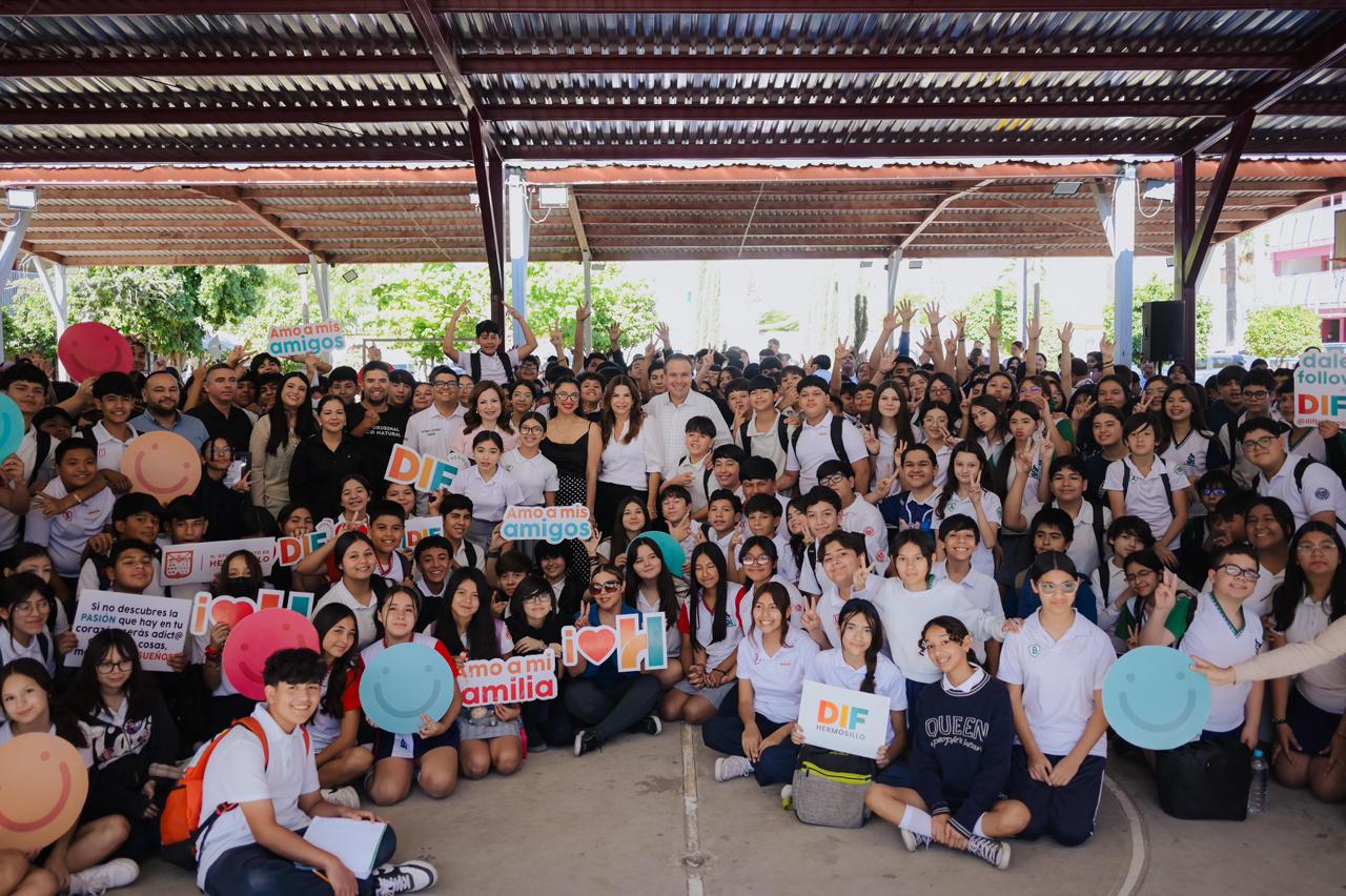 “Fíjense como literalmente nos abrieron la puerta de esta escuela secundaria para cerrarle las puertas a la drogadicción y a las adicciones, y por eso les agradecemos infinitamente”, expresó Toño Astiazarán ante estudiantes, docentes, directivos y padres de familia.