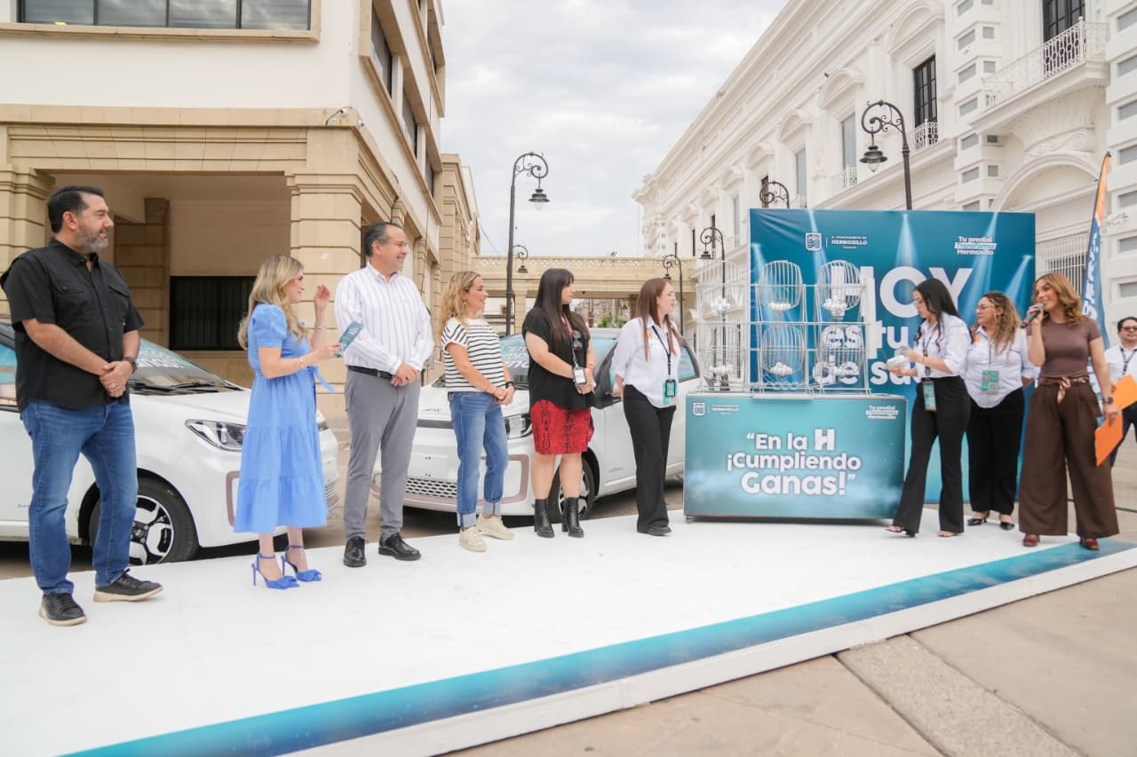 Hermosillo, Sonora; 28 de abril, 2026.- El presidente municipal Antonio Astiazarán correspondió a las ciudadanas y ciudadanos que liquidaron anticipadamente su predial del 2026 en los primeros 3 meses del año con el sorteo de dos vehículos 100% eléctricos, resultando ganadores Ana Lucía Rodríguez Hurtado y José Alberto Gastélum Martínez.