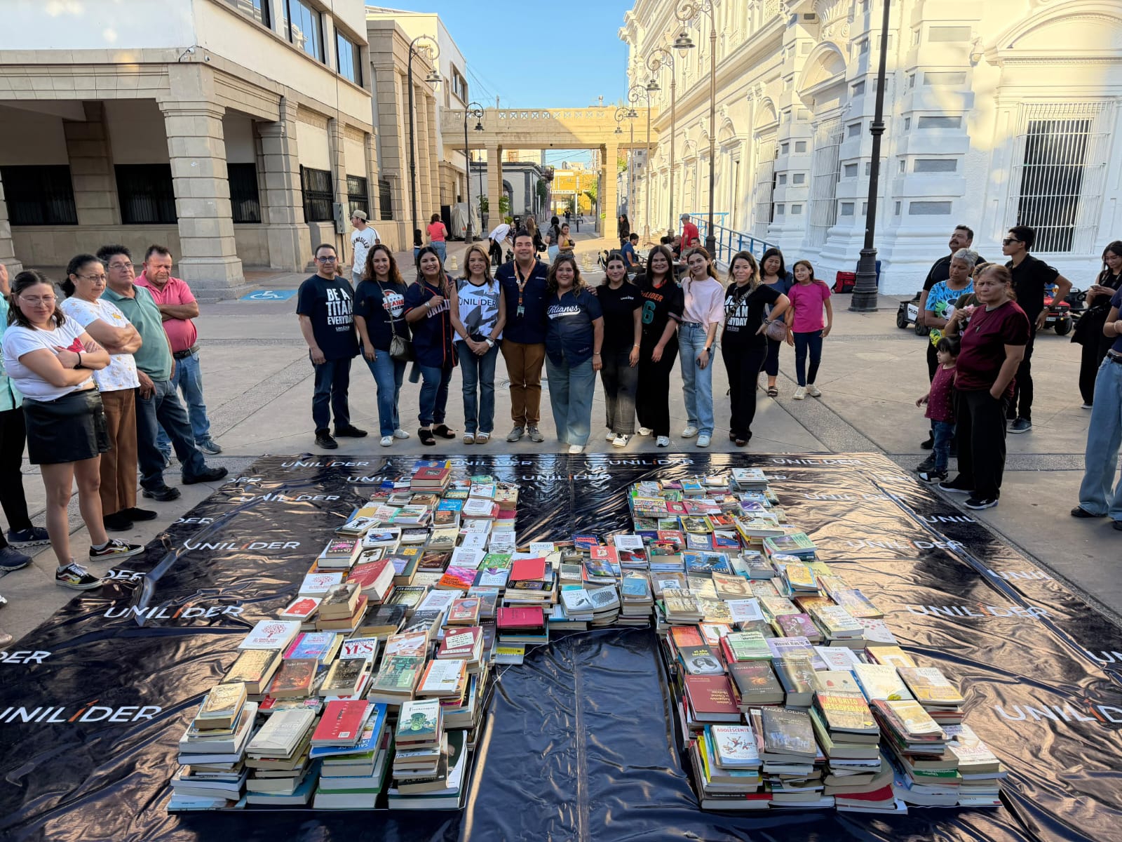 Las y los asistentes pudieron seleccionar uno de los 5 mil libros que se pusieron a disposición al formar una “H” gigante con los libros donados de la cual las personas interesadas tomaron un libro totalmente gratis para continuar con el hábito de la lectura.