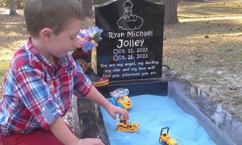 Una madre construye arenero sobre la tumba de su bebé muerto para que pueda seguir jugando con su hermano mayor.