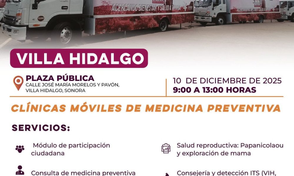 Hermosillo, Sonora; 8 de diciembre de 2025.- La Secretaría de Salud informa que las Clínicas Móviles de la Jornada de Salud Colectiva estarán disponibles en distintos...