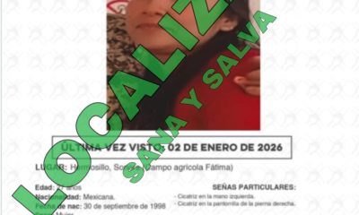 Hermosillo, Sonora, 6 de febrero de 2026.- La Fiscalía General de Justicia del Estado de Sonora (FGJES) informa que fue localizada con vida la joven Naxhelli...