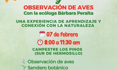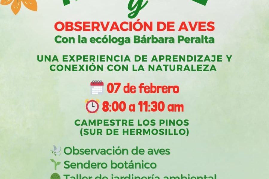 Este sabado 7 de febrero se realizará el Taller Ambiental y de Observación de Aves en el área campestre Los Pinos, al sur de Hermosillo, con...