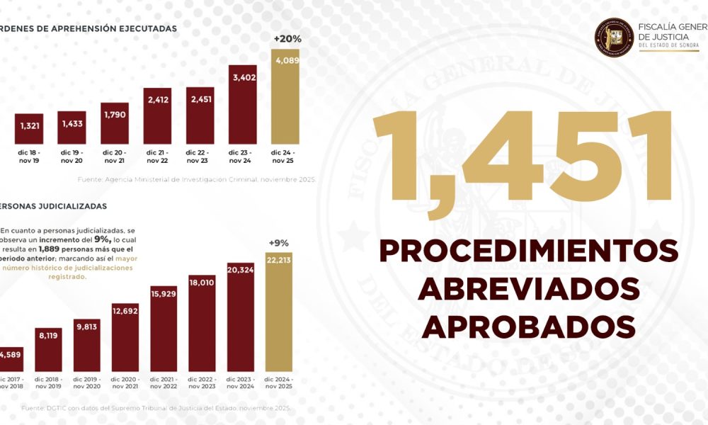 Hermosillo, Sonora, 30 de diciembre de 2025.- La Fiscalía General de Justicia del Estado de Sonora (FGJES), reportó en su informe anual de actividades 2025, entre...