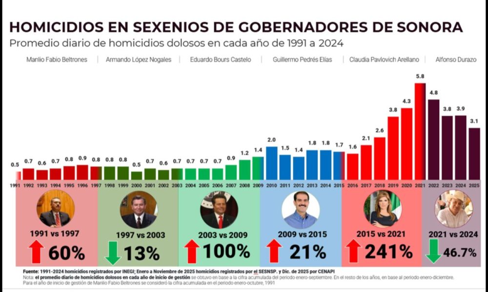 Hermosillo, Sonora; 26 de diciembre de 2025.- Bajo el liderazgo del gobernador Alfonso Durazo Montaño, Sonora ha logrado la mayor reducción en décadas del 46.7% en...