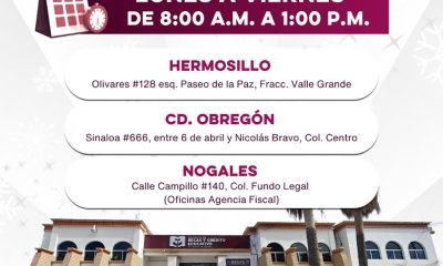 Hermosillo, Sonora; 20 de diciembre de 2025.- La Secretaría de Hacienda del Estado de Sonora hace un llamado a las personas físicas y morales a revisar...