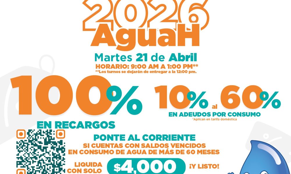 Hermosillo, Sonora; 20 de abril, 2026.- Este martes 21 de abril de 9:00 a 13:00 horas se llevará a cabo la Jornada de Descuentos que impulsa Agua...