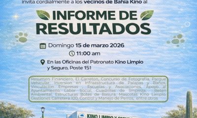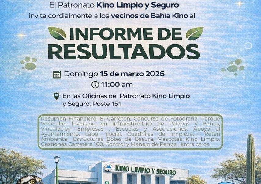 El Patronato Kino Limpio y Seguro invitó a los vecinos de Bahía de Kino este domingo 15 de marzo, a asistir al informe de resultados donde...