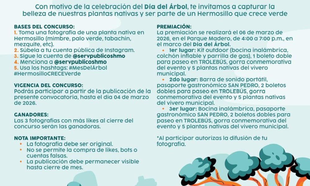 Hermosillo, Sonora, 20 de febrero, 2026.- Los aficionados a la fotografía y amantes de la naturaleza pueden participar en el Concurso Flash de Fotografía “Ciudad Árbol” en...
