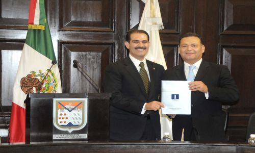 En sesión solemne, el gobernador Guillermo Padrés Elías, recibe el documento que establece el estado general de la administración pública municipal