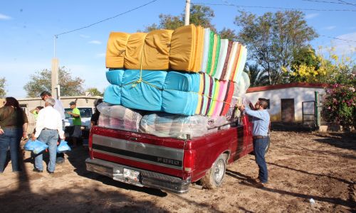 El alcalde Alejandro López Caballero en compañía de la presidenta de DIF, Silvia Félix, acudió a La Victoria para hacer entrega de los primeros apoyos recaudados...