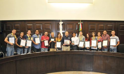 El Presidente Municipal recibió a los 11 deportistas, en la sala de Cabildo del Ayuntamiento, donde los reconoció públicamente como un ejemplo para la juventud hermosillense,...
