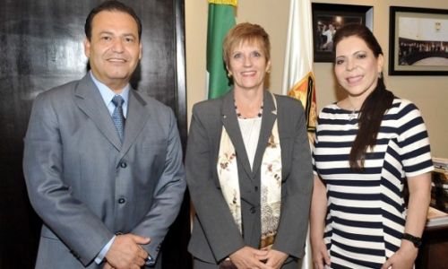 El alcalde Alejandro López Caballero y la presidenta del Sistema DIF Municipal, Silvia Félix, recibieron en el Palacio Municipal a la nueva cónsul general de Estados...