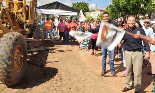 el alcalde Alejandro López Caballero dio el banderazo para el arranque de la primera etapa de pavimentación en un tramo de la calle Huépac, con una...