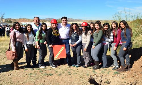 El legislador nogalense y el selectivo del Cetis 128 dan el banderazo inicial para la obra en beneficio de esta y futuras generaciones de jóvenes