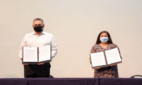 Firma Celida Lopez convenio de colaboracion con Unison para proyecto de Parque Lineal Estacion Zamora-La Sauceda