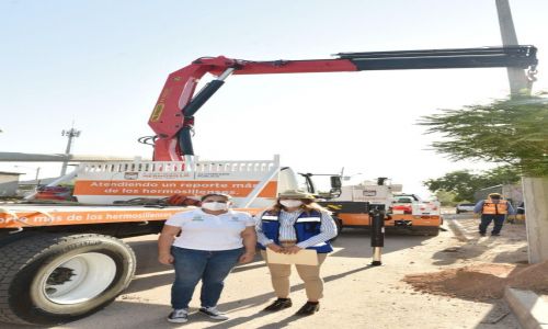 Entrega Celida Lopez nueva grua a Alumbrado Publico de Hermosillo