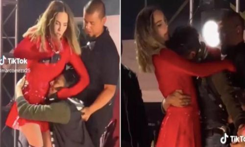 Fan de Belinda la lastima tras subir al escenario durante un concierto