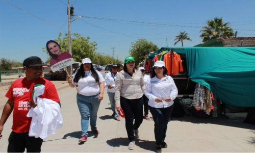 Brenda Jaime recorre tianguis y mantiene contacto directo con los ciudadanos en Cajeme
