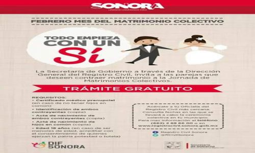 Invitan DIF Caborca y Registro Civil a participar en boda colectiva