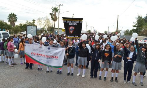 Marchan estudiantes contra la violencia escolar en Caborca