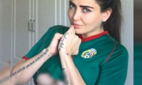 Celia Lora se moja la camiseta para celebrar victoria de Mexico
