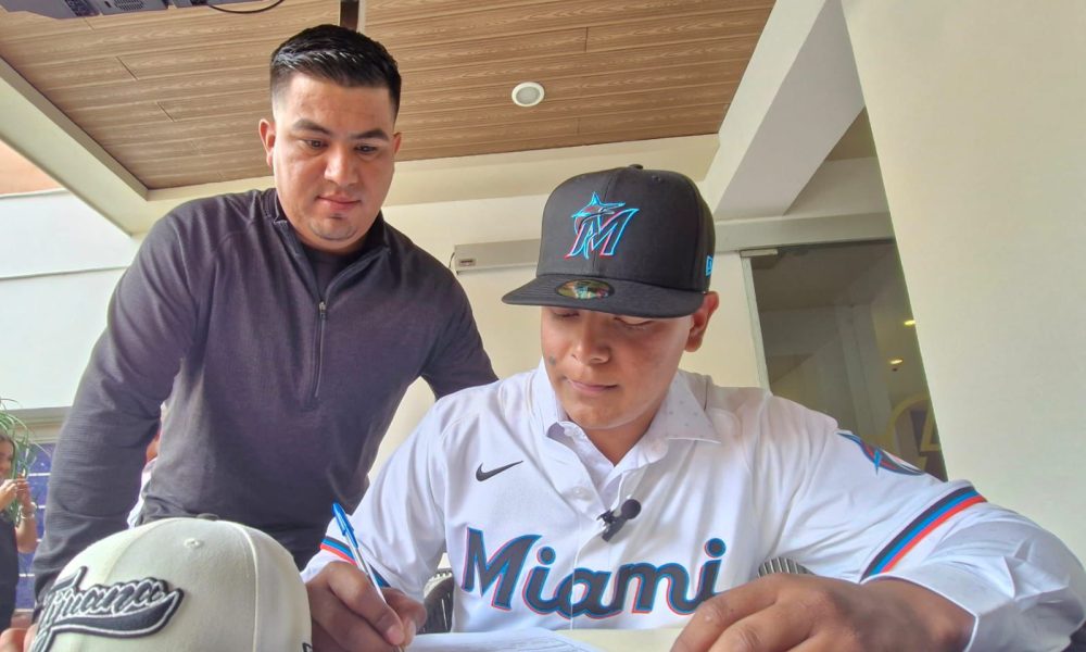 Hermosillo, Sonora; 22 de enero de 2025.- Moisés Morales Rivera, joven beisbolista prospecto de Grandes Ligas, quien firmó recientemente con la organización Marlins de Florida, indicó...