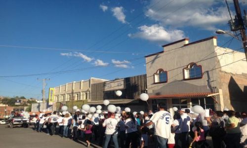Personal de la empresa repartió pancartas y en camiones para el transporte de trabajadores llegaron centenares de globos blancos.
