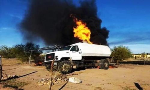 Se incendia pipa y bodega clandestina de huachicol en Sonora