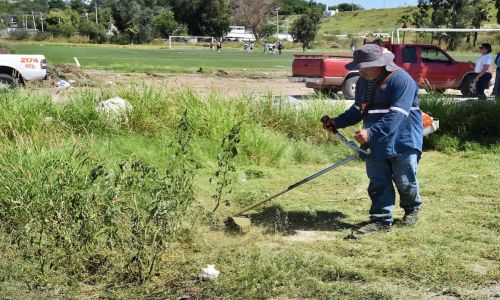 Retira personal del IDH maleza de unidades deportivas
