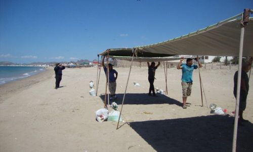 Regularan colocacion de loneros en zona de palapas en Bahia de Kino