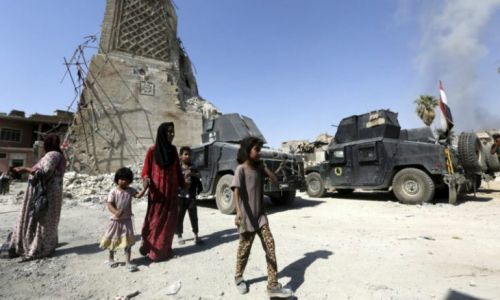 Hallan sacos de billetes bajo escombros del Banco Central de Mosul en Irak
