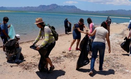 Jovenes ayudan a limpiar la comunidad Seri de Punta Chueca