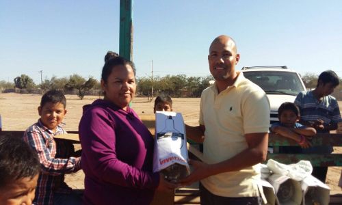 El presidente de la Comisión del Deporte en el Congreso del Estado entrega material deportivo y lámparas de iluminación.